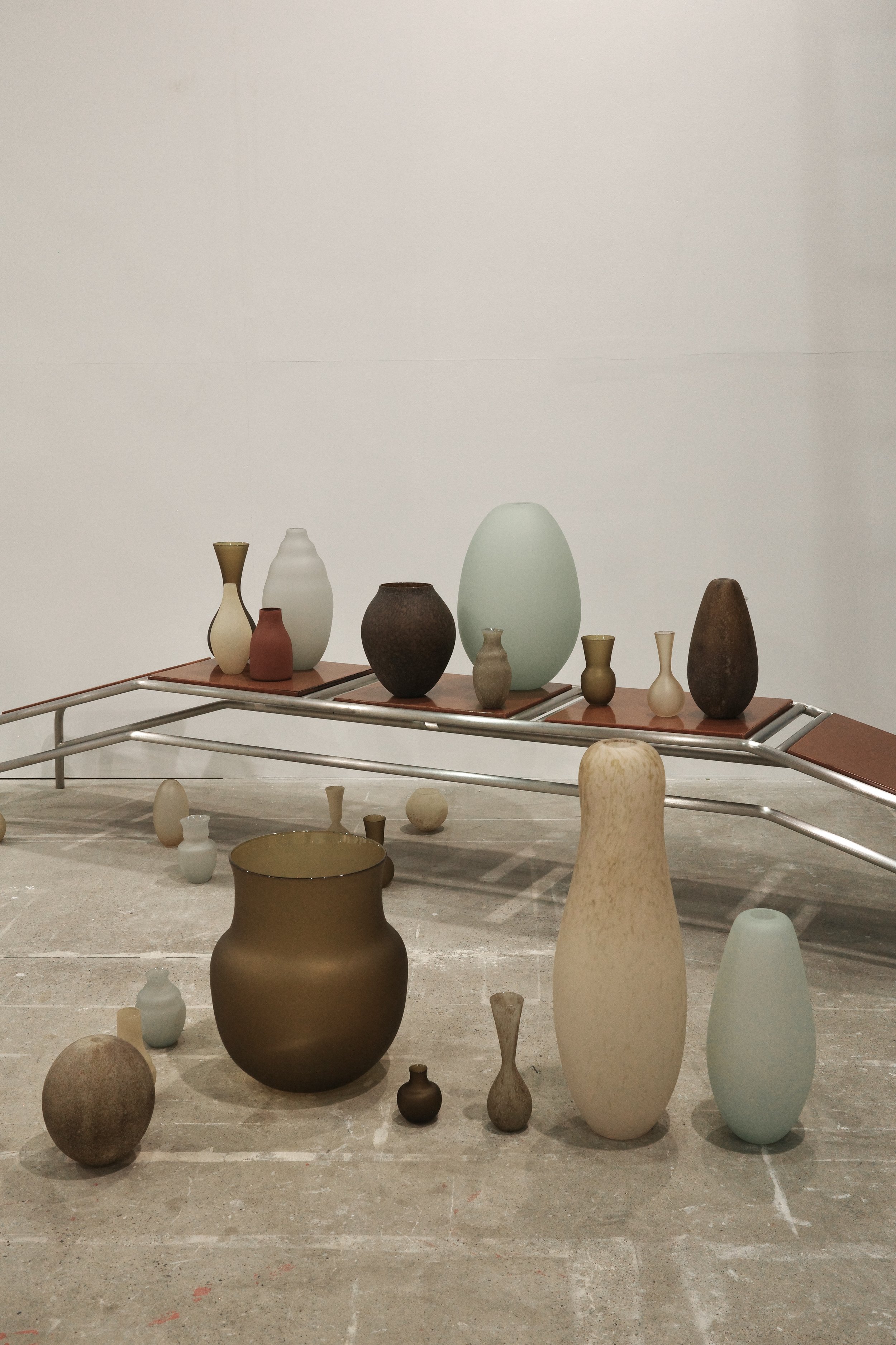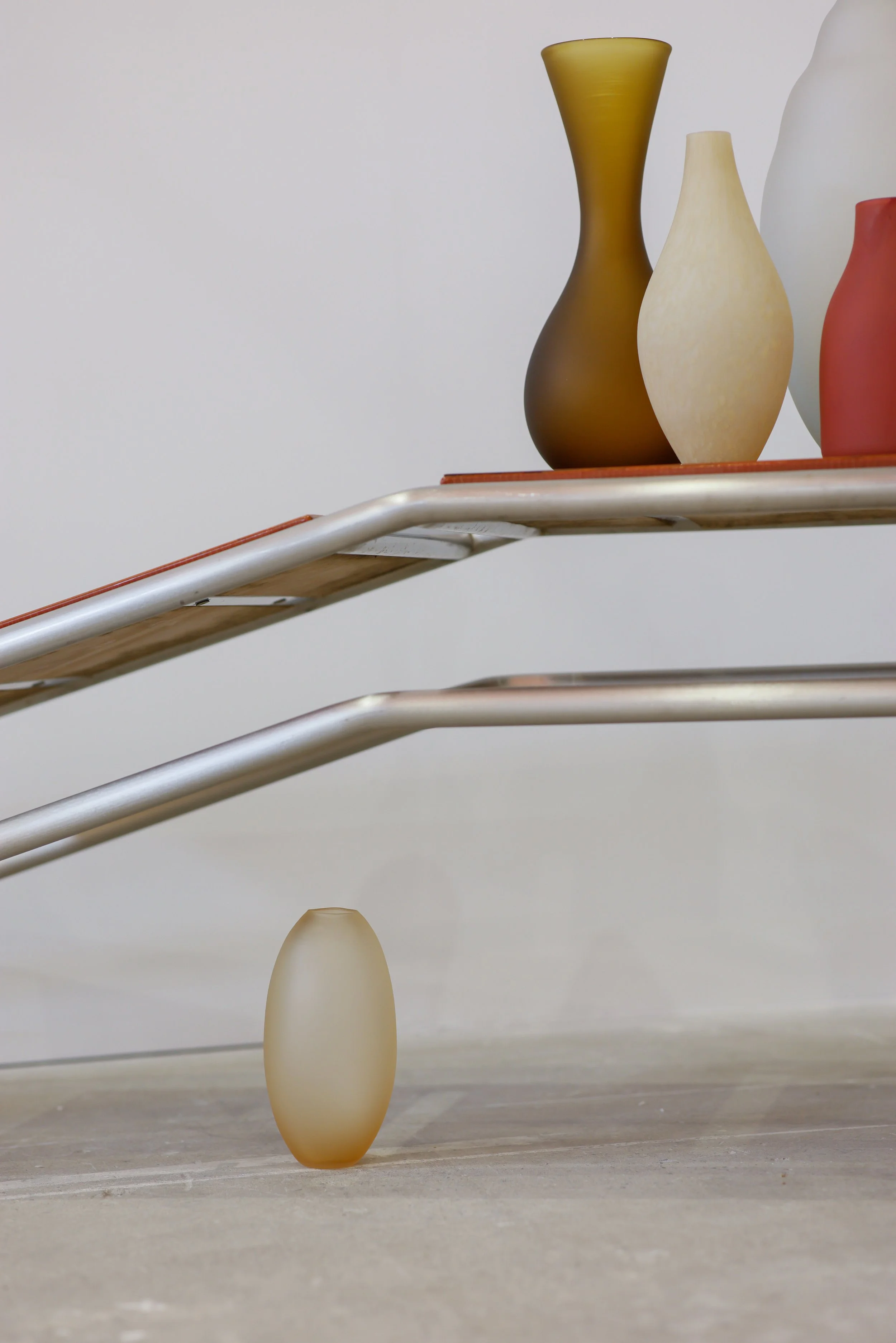 Every piece is hand blown in Montréal by Jérémie St-Onge. His practice, whilst respecting the traditions learned from masters, allows for a more instinctive creative approach. When the craft worker is also an artist, there is space for spontaneity and nuances. Every piece has an unforeseen aspect that distinguishes singular from ordinary. This is not a production, but rather a large collection. The design is in the arrangement, the ensemble defines it.